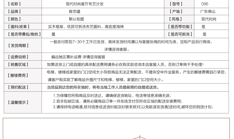 - 商品名称:佐尔适 沙发 布艺沙发 现代简约大小户型皮布沙发 客厅家具 二件套 送地毯