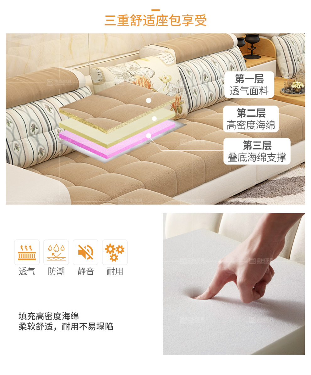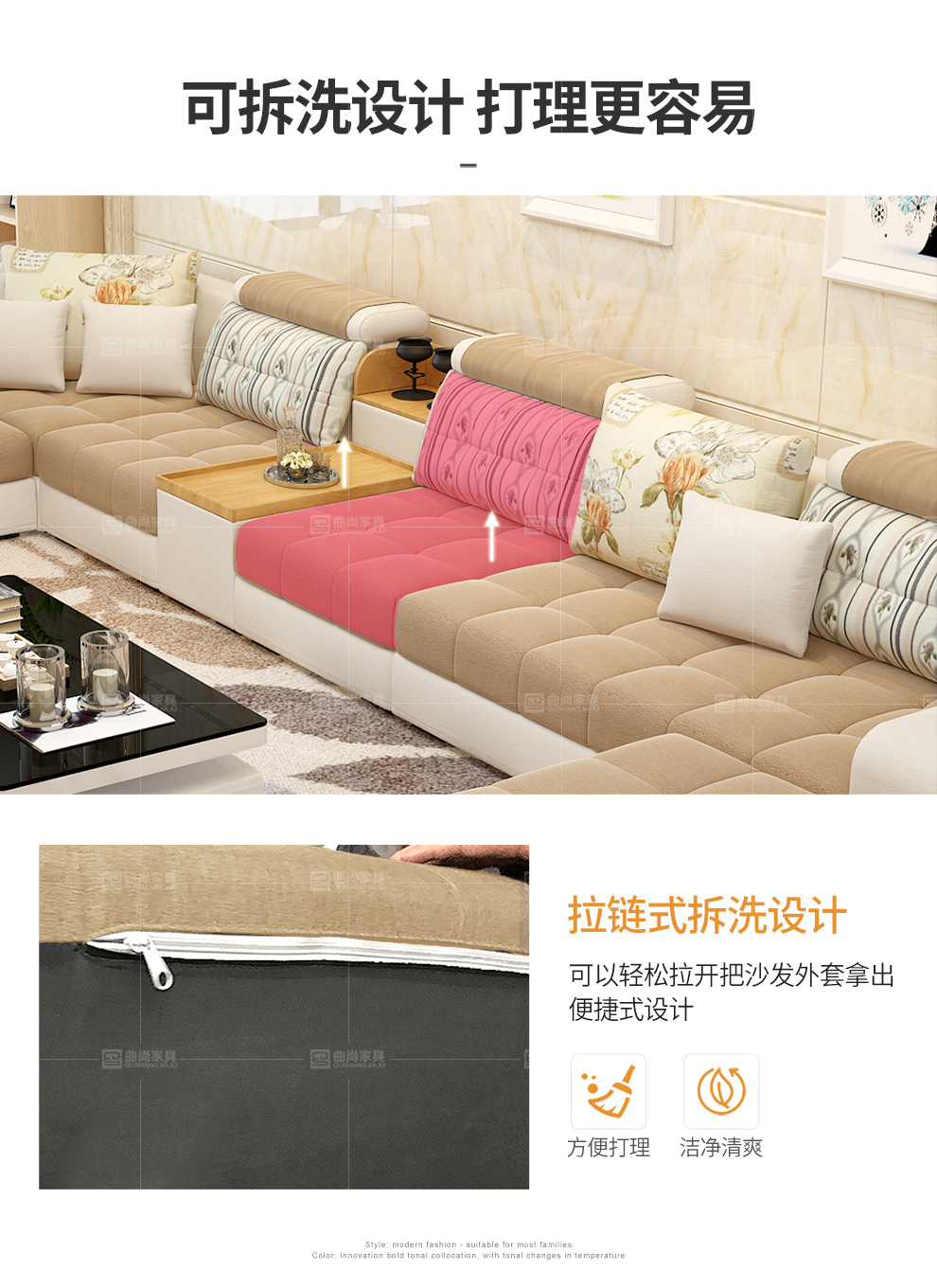 - 商品名称:曲尚(Qushang)沙发客厅可拆洗布艺沙发现代简约组合家具 5件套/赠精品茶几+电视柜