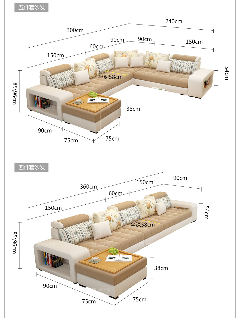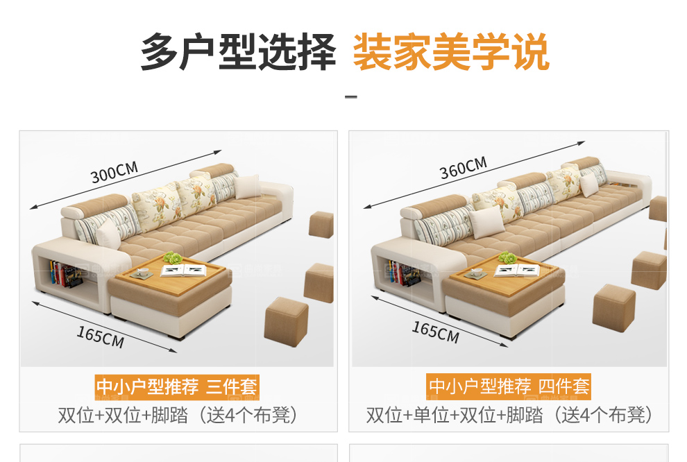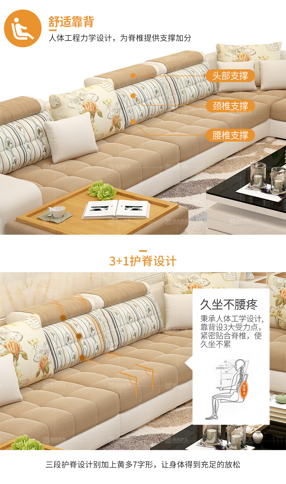 曲尚(Qushang)沙发客厅可拆洗布艺沙发现代简约组合家具 5件套/赠精品茶几+电视柜
