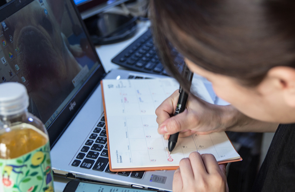 一早来到公司,南云友里香就开始查阅邮件,并在笔记本上写下最新的日程安排。