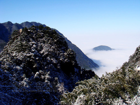 潇洒人生带着我们抄近路很快就到了明月山,车子停靠在停车坪,大部队集合后开始上山。本来听说是下雪要封山,缆车就停运了,到售票窗口一问还开着,虽然缆车中段不能停下来,但是能直达山顶,俺们运气够好的啦,不过也因此与老羊羊擦肩而过,留点遗憾下回再补:)